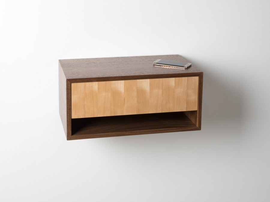A craftsman’s take on a modern nightstand. Solid wood casework, and dovetailed drawers meet up with a bespoke design, and a wireless proximity charger. Available as seen in Black ash & spalted holly, Walnut & birtch, White ash & beech, or other custom combinations upon request.
